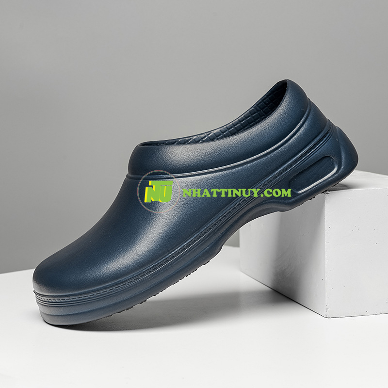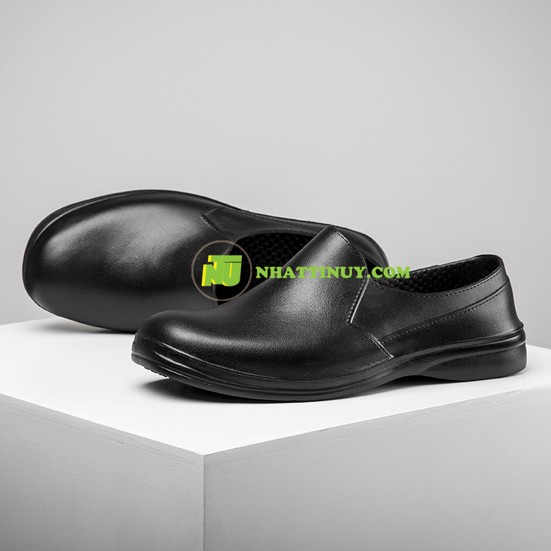 Giày thấp cổ hoặc cao cổ tùy theo từng nhiệm vụ: Lựa chọn độ cao của giày phụ thuộc vào tính chất công việc và mức độ bảo vệ cần thiết. Giày thấp cổ (low-cut) thường mang lại sự linh hoạt và thoải mái hơn, phù hợp cho những vị trí ít tiếp xúc trực tiếp với chất lỏng hoặc vật nặng rơi. Trong khi đó, giày cao cổ (mid-cut hoặc high-cut) cung cấp khả năng bảo vệ mắt cá chân tốt hơn, ngăn chặn chất lỏng bắn vào và phù hợp cho những người làm việc ở khu vực rửa chén, chế biến thịt, hoặc nơi có nguy cơ va đập cao. d. Tính năng dễ vệ sinh Giày dễ lau chùi, không gây tích tụ vi khuẩn: Trong môi trường thực phẩm, vệ sinh là yếu tố tối quan trọng. Giày đi trong bếp cần có thiết kế đơn giản, ít khe rãnh, đường may phức tạp để tránh tích tụ bụi bẩn, dầu mỡ và vi khuẩn. Khả năng rửa sạch nhanh chóng dưới vòi nước và phơi khô nhanh là một ưu điểm lớn, giúp duy trì tiêu chuẩn vệ sinh cao nhất. e. Giày có độ thoáng khí Giúp giảm mồ hôi, phòng tránh nấm mốc: Mặc dù cần chống thấm nước, giày bếp vẫn phải đảm bảo độ thoáng khí nhất định để tránh tình trạng bí bách, đổ mồ hôi chân. Mồ hôi tích tụ không chỉ gây khó chịu, mùi hôi mà còn là môi trường lý tưởng cho nấm và vi khuẩn phát triển, dẫn đến các bệnh về da chân. Nhiều loại giày bếp hiện đại sử dụng lớp lót bên trong có khả năng thấm hút mồ hôi và công nghệ kháng khuẩn, khử mùi (ví dụ: ion bạc, than hoạt tính) để giữ cho chân luôn khô ráo và thoải mái. 3. Các loại giày thích hợp Dựa trên các tiêu chí trên, dưới đây là một số loại giày phổ biến và phù hợp cho môi trường bếp: Giày chống trượt chuyên dụng cho bếp: Đây là lựa chọn tối ưu, được thiết kế riêng biệt để đáp ứng các yêu cầu khắt khe của môi trường bếp. Các mẫu giày này thường có đế SRC, chống dầu, chống thấm nước và có thể có thêm tính năng chống va đập, chống đâm xuyên (nếu có mũi thép hoặc composite và tấm lót chống đâm xuyên). Chúng được làm từ vật liệu dễ vệ sinh như microfiber hoặc da tổng hợp. Giày cao su hoặc nhựa dùng trong môi trường ẩm ướt: Các loại giày làm hoàn toàn từ cao su hoặc nhựa EVA, thường có kiểu dáng dép sục hoặc giày bít, rất phù hợp cho những khu vực thường xuyên ngập nước hoặc cần vệ sinh thường xuyên. Ưu điểm của chúng là khả năng chống thấm tuyệt đối, dễ dàng rửa sạch và trọng lượng nhẹ. Tuy nhiên, cần chú ý chọn loại có đế chống trượt tốt và có lỗ thông hơi ở phần trên để tăng độ thoáng khí. Giày thể thao có đế chống trượt, dễ vệ sinh: Một số mẫu giày thể thao được thiết kế với đế ngoài chống trượt và vật liệu thân giày dễ vệ sinh cũng có thể là lựa chọn thay thế cho môi trường bếp ít khắc nghiệt hơn. Tuy nhiên, cần kiểm tra kỹ các tiêu chuẩn chống trượt và khả năng chống thấm nước của chúng, vì không phải tất cả giày thể thao đều đáp ứng yêu cầu của môi trường bếp chuyên nghiệp.